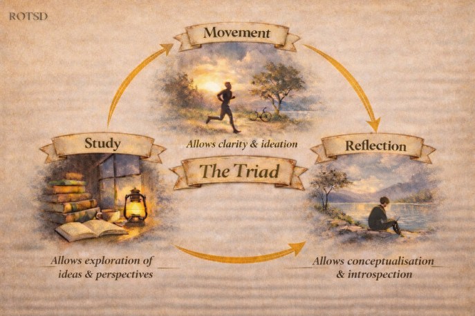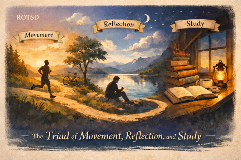 Three simple anchors that helped maintain rhythm between effort and recovery: movement, reflection, and study. for me, none of these practices exist in isolation, but each one strengthened the others. Movement creates the space for ideas, reflection gives them structure, and study expands them beyond the self. Over time, they form a cycle — a rhythm that sustains both clarity and growth.